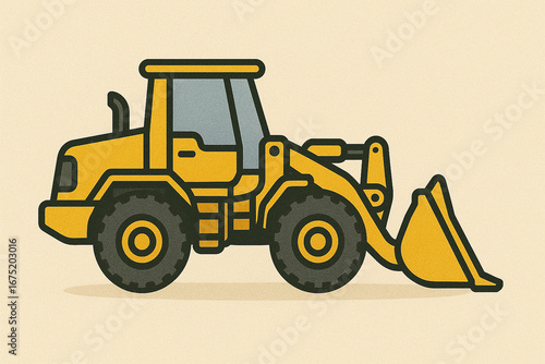© itsara, Naklejka premium Yellow Loader at Work, Industrial Site, Illustration, Clear Environment, Side Viewpoint, Machinery Concept
