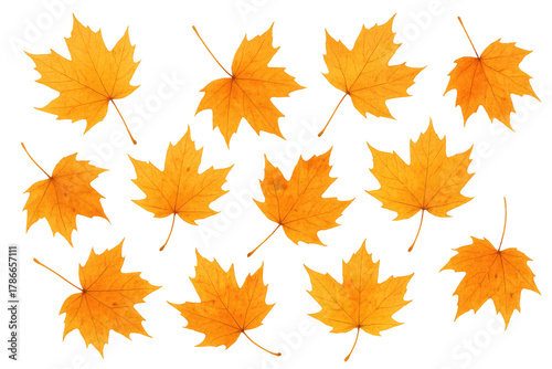 © Michael, Obraz premium Yellow maple leaves creating an autumn pattern, symbolizing fall season and nature's change on transparent background
