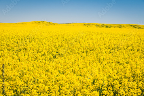 © Daniel, Obraz premium Yellow meadow under blue sky with clouds