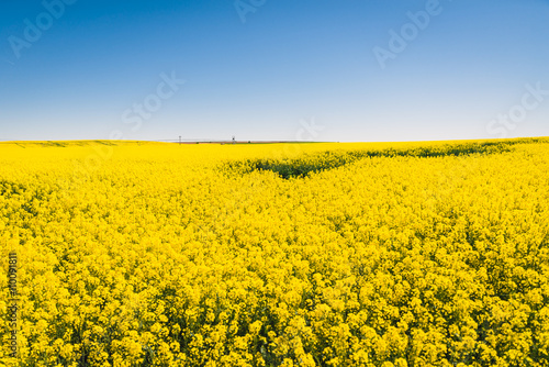 © Daniel, Obraz premium Yellow meadow under blue sky with clouds