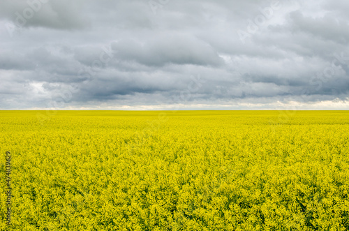 Obraz premium Yellow meadow under grey sky with clouds