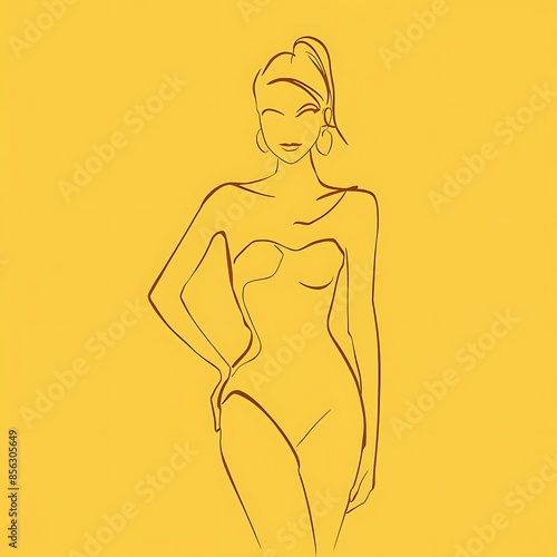 Fototapeta premium Yellow Minimalist Line Art Women Illustration
