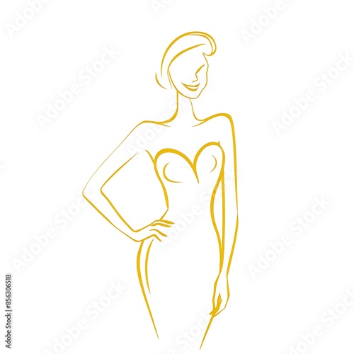 © Pista Hunt, Fototapeta premium Yellow Minimalist Line Art Women Illustration
