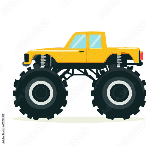© Daniel, Naklejka premium Yellow monster truck kids drawing wall clipart - flat vector art