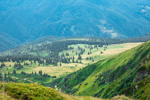 Fototapeta premium yellow mountain valley in the foot hills surrounded with green forest