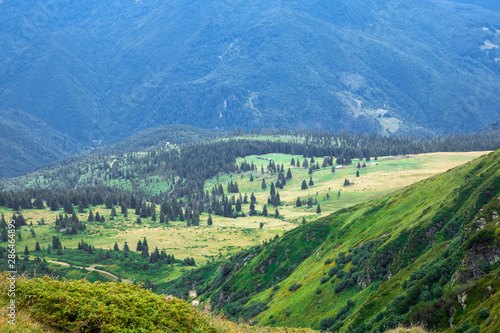 © AlexR, Fototapeta premium yellow mountain valley in the foot hills surrounded with green forest
