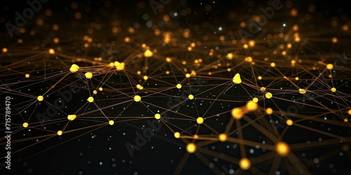 Fototapeta premium Yellow network structure with dark background, technology