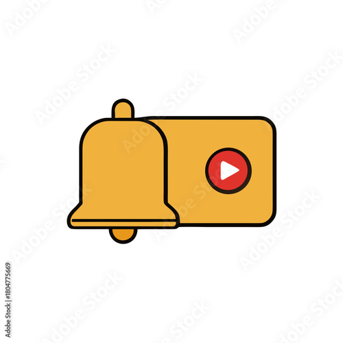 © Mukta, Fototapeta premium Yellow notification bell and play button icon on black background