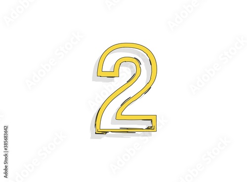 Naklejka premium 2 yellow number, hand drawn brush stroke. Comic style, calligraphic design. For design element, logo, creative poster etc. Vector illustration