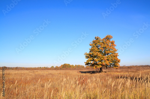 © Sergey YAkovlev, Fototapeta premium yellow oak on autumn field