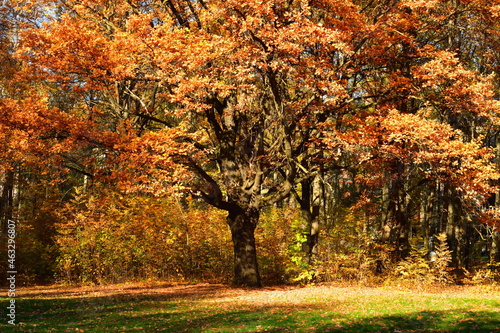Fototapeta premium Yellow oaks in the sunlight in the park