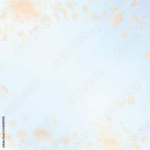 © Begin Again, Fototapeta premium Yellow orange flower petals falling down. Quaint r