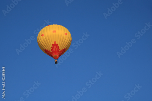 © u.perreten, Fototapeta premium Yellow orange hot air balloon over Vang Vieng, Laos.