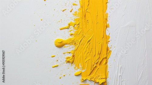 © TheWaterMeloonProjec, Fototapeta premium Yellow paint smudge on a white surface