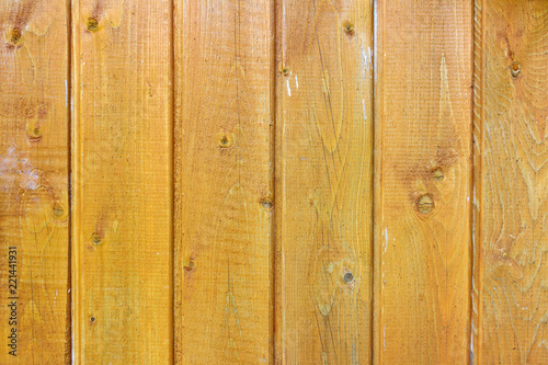© Vladimir Zhupanenko, Naklejka premium Yellow painted old wooden planks texture. Abstract wooden background
