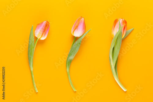 © gitusik, Naklejka premium Yellow pastels color tulips on yellow background.