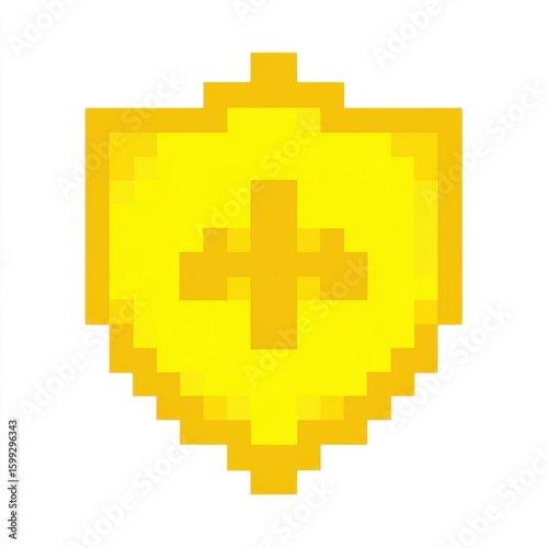 Obraz premium Yellow Pixel Art Shield with Plus Sign