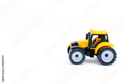 Fototapeta premium yellow plastic tractor, truck, lorry, car toy isolated, toys for children,...