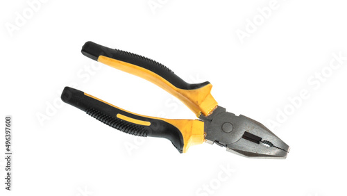 Obraz premium yellow pliers on a white background