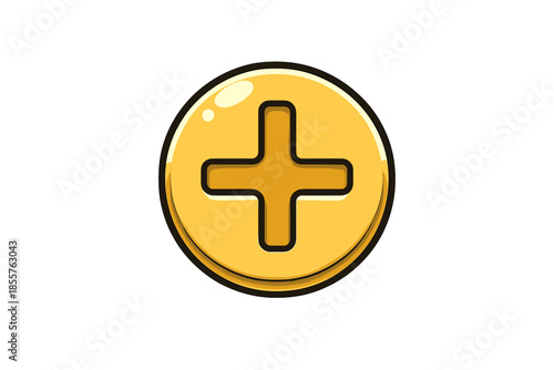 © Антон Сальников, Obraz premium Yellow plus sign button with shadow effect