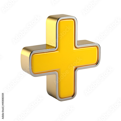 © Alisha, Obraz premium Yellow plus sign 3d isolated on white background