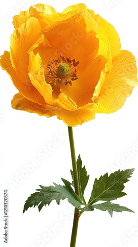© DZIKRA , Naklejka premium Yellow poppy flower bloom, isolated on white, spring garden