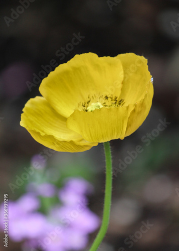 Fototapeta premium Yellow Poppy on dark background - Meconopsis cambrica - Welsh poppy