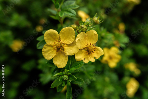 Obraz premium yellow potentilla flowers are in the park
