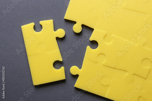 Fototapeta premium Yellow puzzle pieces. Teamwork, business concept