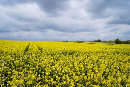 © Andzia, Fototapeta premium Yellow rapeseed field. Canola bloming.