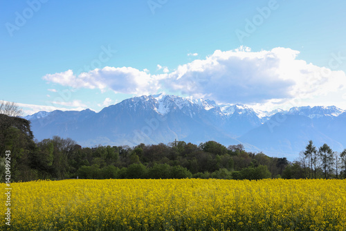 Fototapeta premium Yellow rapeseed field in Switzerland