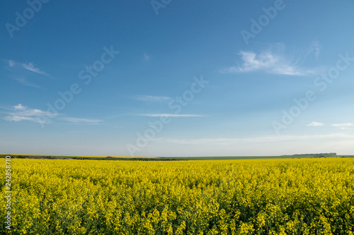 © cherry26, Fototapeta premium Yellow rapeseed field under blue sky