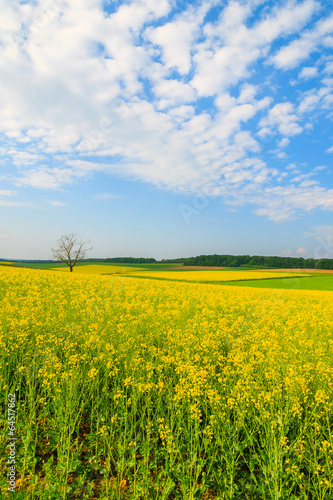 Fototapeta premium Yellow rapeseed flower field and blue sky, Burgenland, Austria