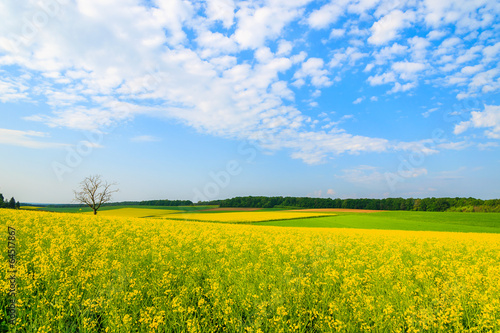 Fototapeta premium Yellow rapeseed flower field and blue sky, Burgenland, Austria
