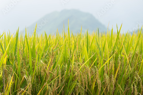 © Hanoi Photography, Fototapeta premium Yellow rice paddy in field ready for harvest.