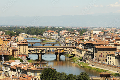 Fototapeta premium yellow roofs and river Florence top view