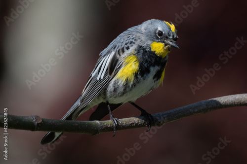 © Laurie Wilson, Fototapeta premium Yellow-Rumped Warbler Perched on a Tree Branch