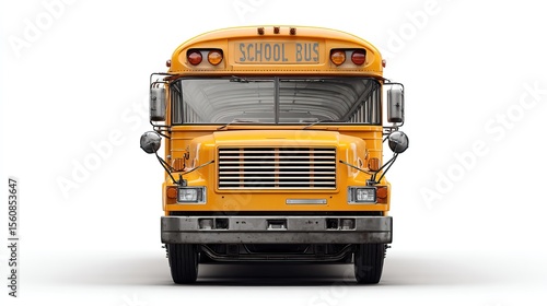 © Javid, Fototapeta premium Yellow school bus isolated on white background. AI generated image