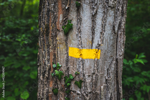 © Guillem de Balanzó, Fototapeta premium yellow sign painted on a tree