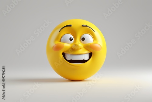 © haiqiang, Fototapeta premium yellow smiley face with a big smile on a plain surface