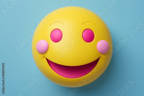 © haiqiang, Fototapeta premium yellow smiley face with pink eyes and pink cheeks on a blue background