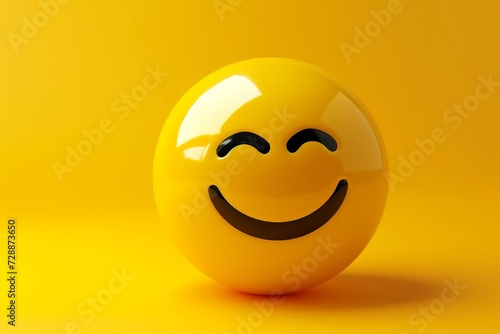 © Leo Rohmann, Fototapeta premium Yellow smiley faces happiness joy, cheerful emotion symbols. 3D cartoon icons, express cheerful sentiments. Round fun smiling expressions. Face illustrations happiness positivity, cheerful atmosphere.