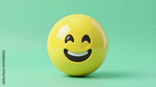 Fototapeta premium Yellow smiling emoji with a glossy finish on a teal background