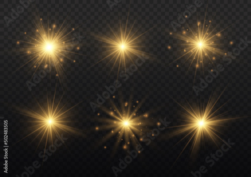 Naklejka premium Yellow sparks sparkle, golden star rays, sun light