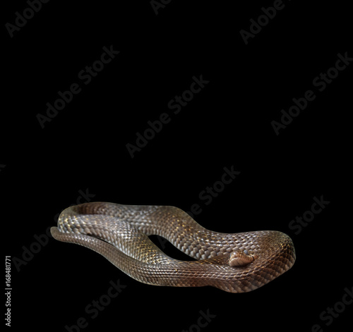© backiris, Fototapeta premium Yellow-Spotted Keelback Coiled on Black Background, Clipping Path