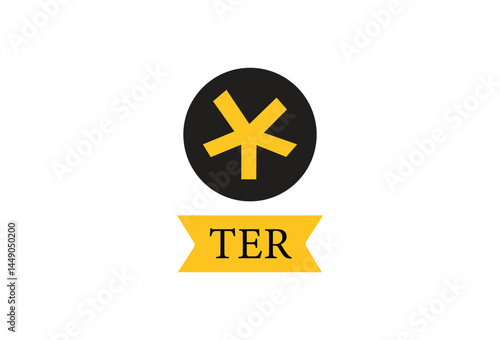 © Md, Fototapeta premium Yellow Star in Black Circle with 'TER' in a Ribbon, isolated on Transparent Background