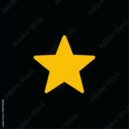 © Irina, Obraz premium Yellow star vector icon on a solid black background. Minimalist graphic design element.
