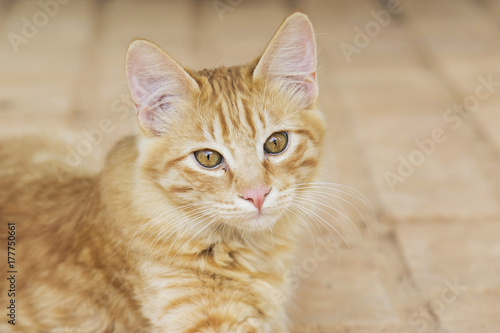 Obraz premium yellow stray kitty cat portrait