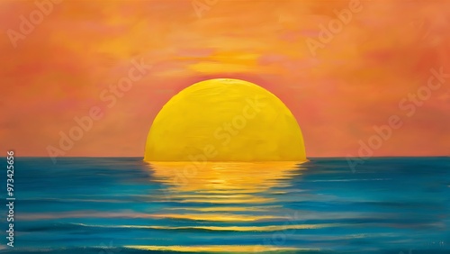 © Kartik, Obraz premium Yellow Sun Set in The Middle of The Ocean