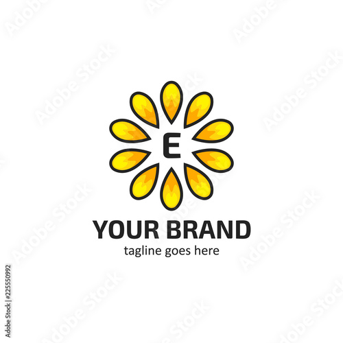 Fototapeta premium Yellow sunflower petals with letter E logo icon symbol vector